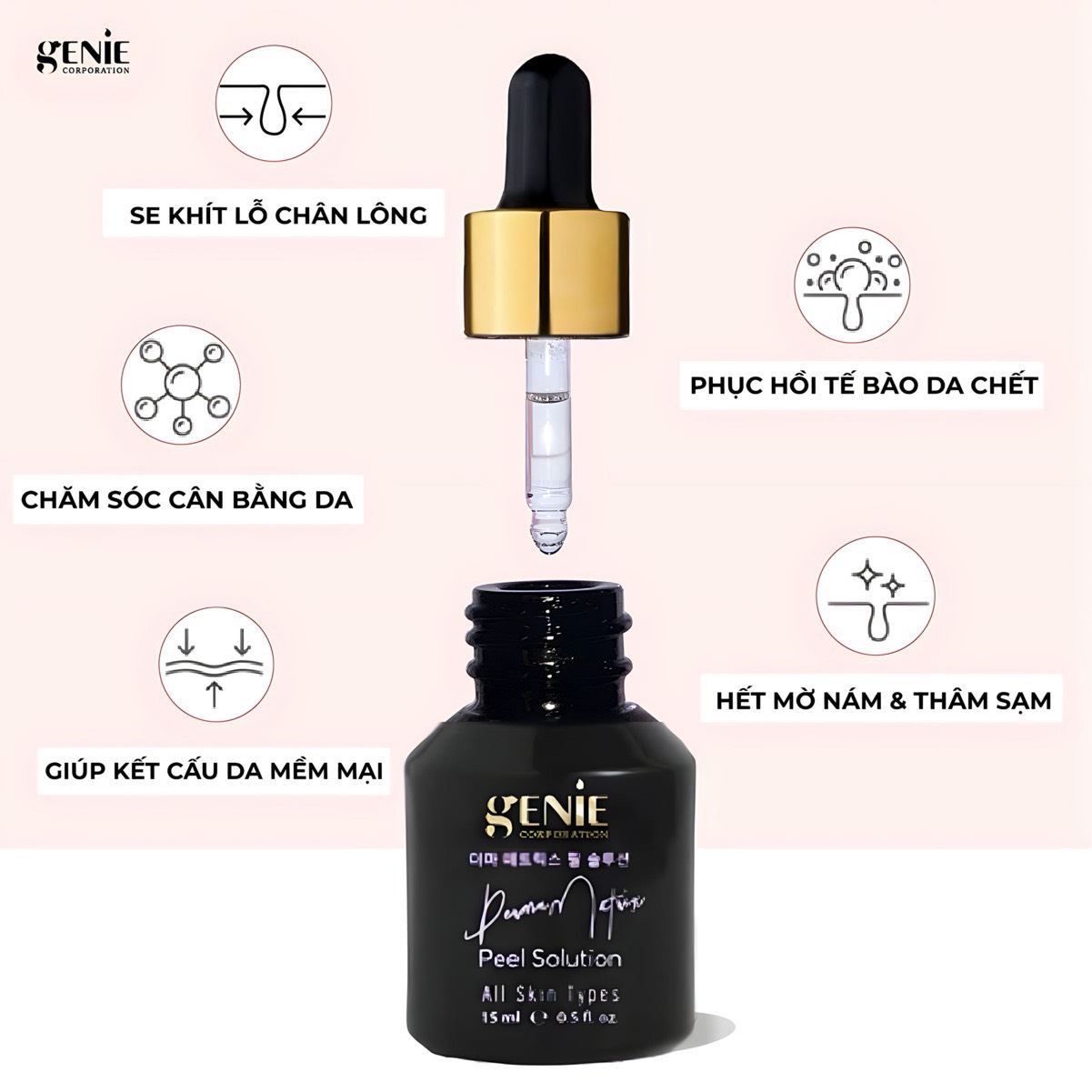 Hiện tại, Tinh chất tái tạo da Genie Derma Matrix Peel Solution đang là sản phẩm lên ngôi dịp nửa cuối 2023. Với công thức tối ưu độc đáo (chứa 25% AHA, 0,5% BHA, 10% PHA) mang đến hiệu quả khả năng thẩm thấu tác dụng đi sâu vào tận trung bì làm thay đổi, tái tạo kết cấu da.